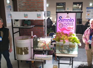 En Simbioponia incorporamos mas pasos como la recuperación de líquidos y sólidos remanentes del sistema, para reintegrarlos al circuito y obtener subproductos, recreando las condiciones para que la vida acuática y terrestre interactúen como en los ecosistemas naturales.