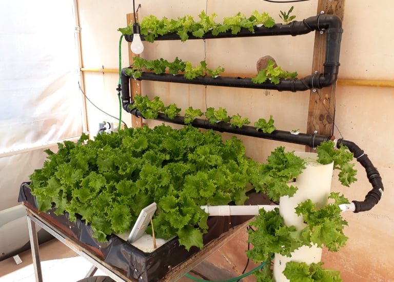 La Hidroponia es una método de cultivo de plantas que prescinde por completo del suelo como medio de sustento para las raíces. la Piscicultura es el cultivo controlado de peces, la Acuaponia es la unión de ambos sistemas de cultivo.